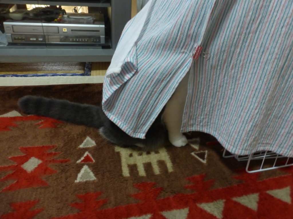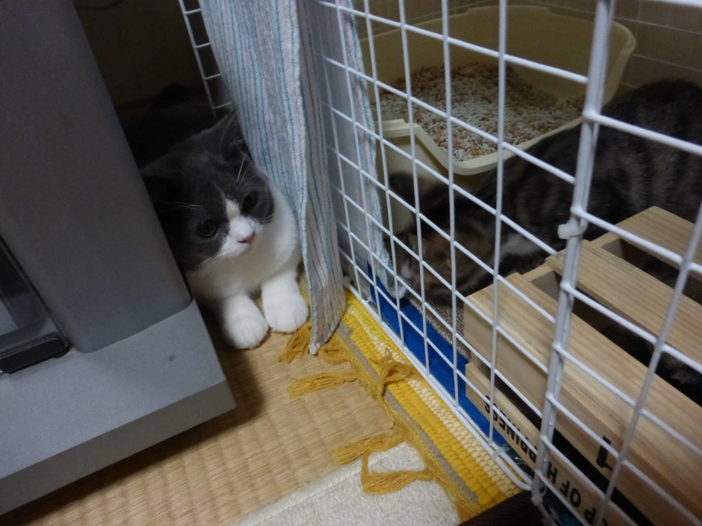 たまりかねた主人がケージにミミちゃんを戻してやっと落ち着きました。