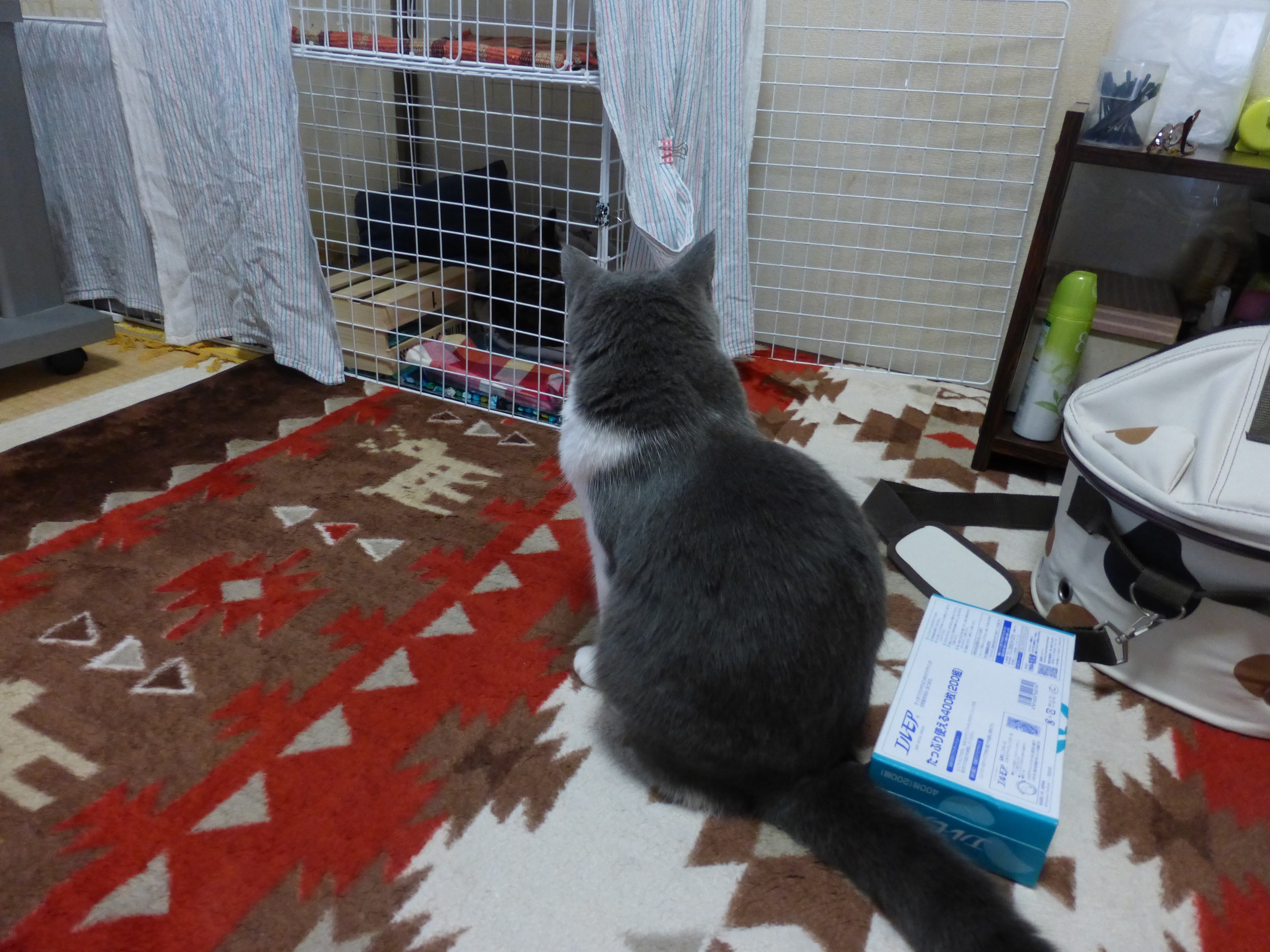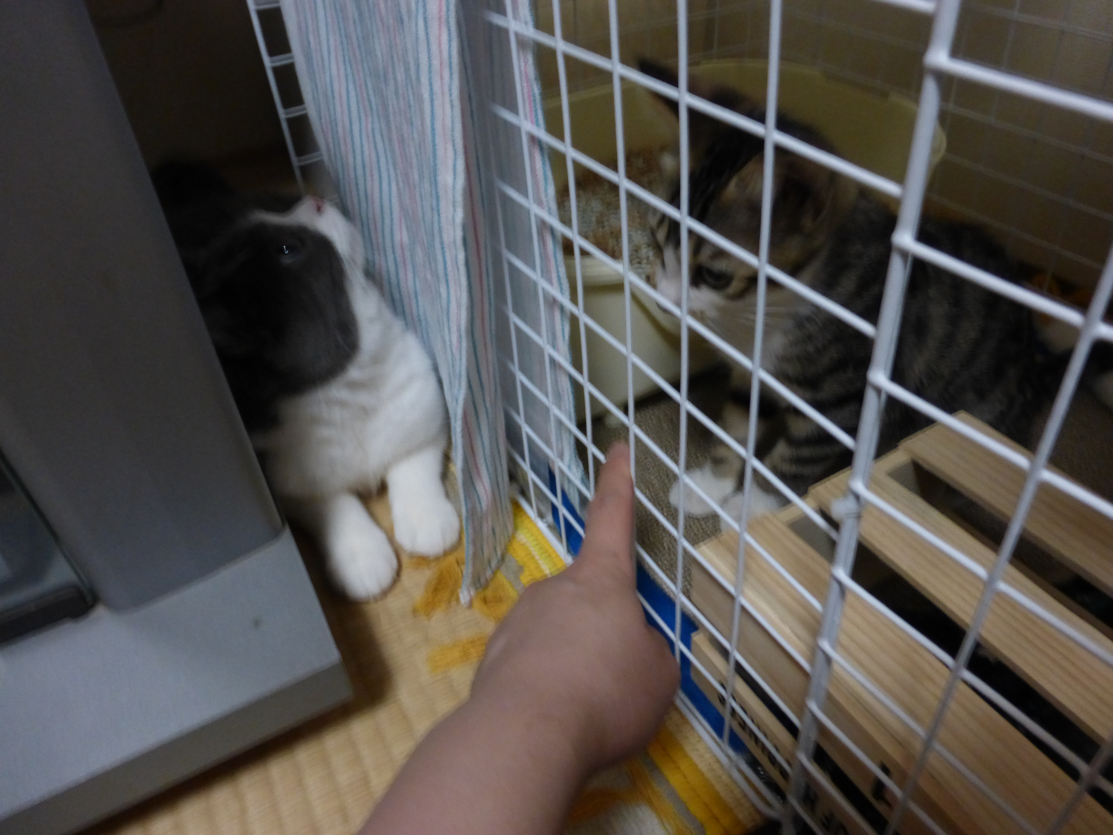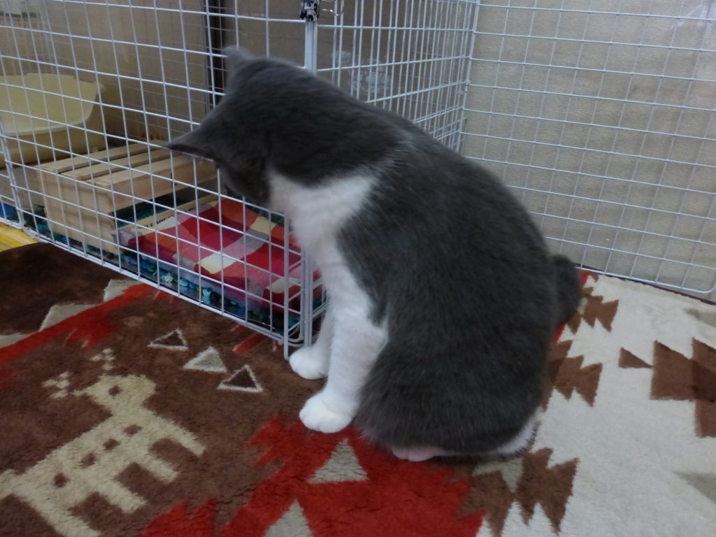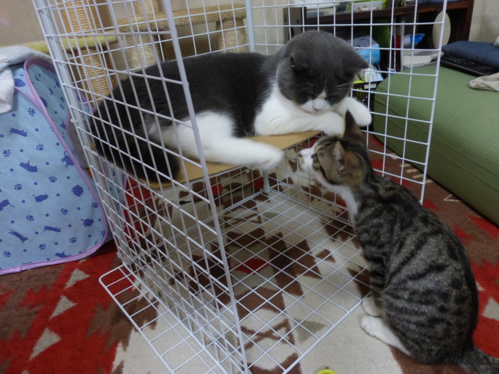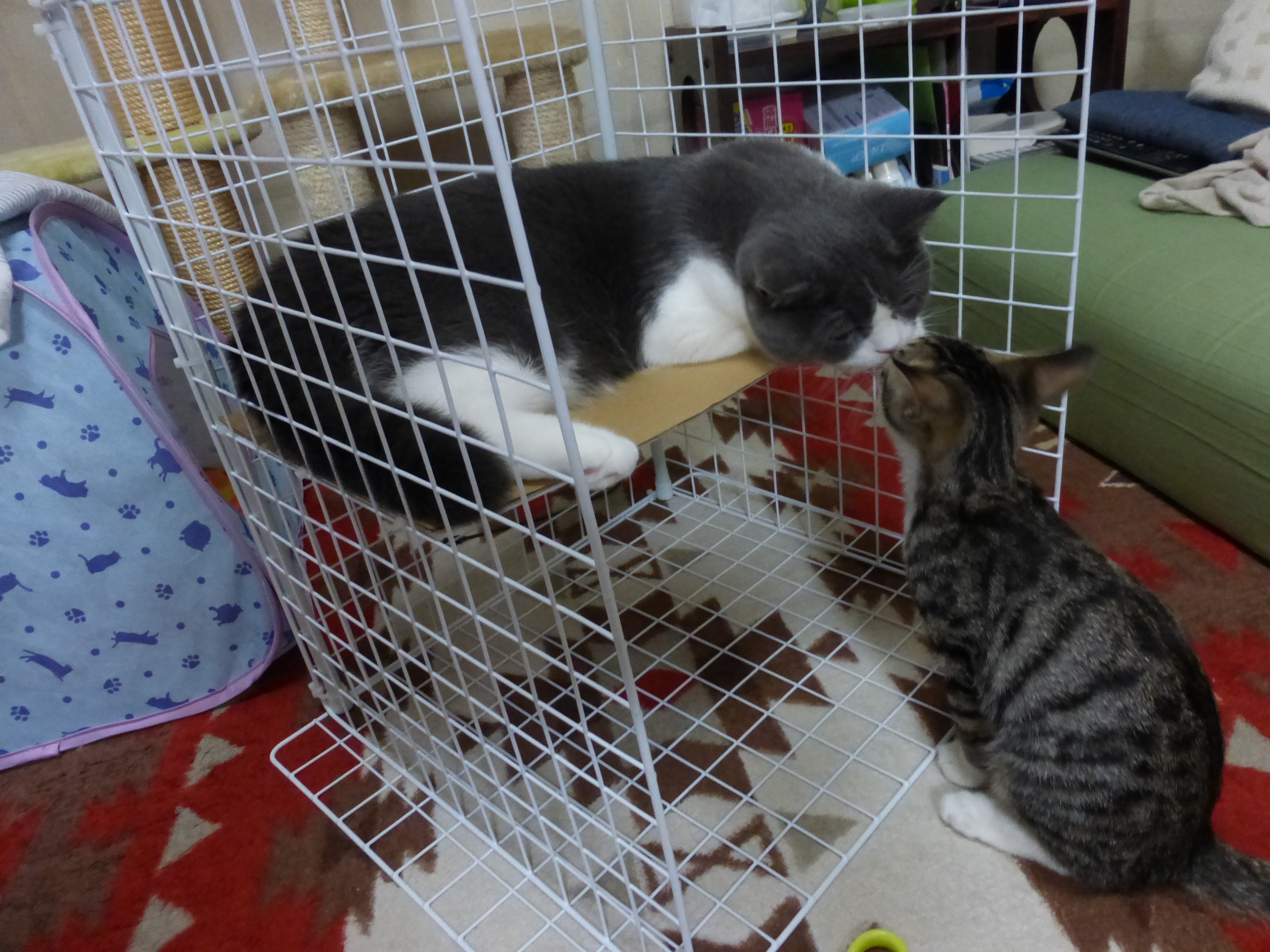 子猫ちゃん用のケージに興味津々な先住猫のコタロー君♪